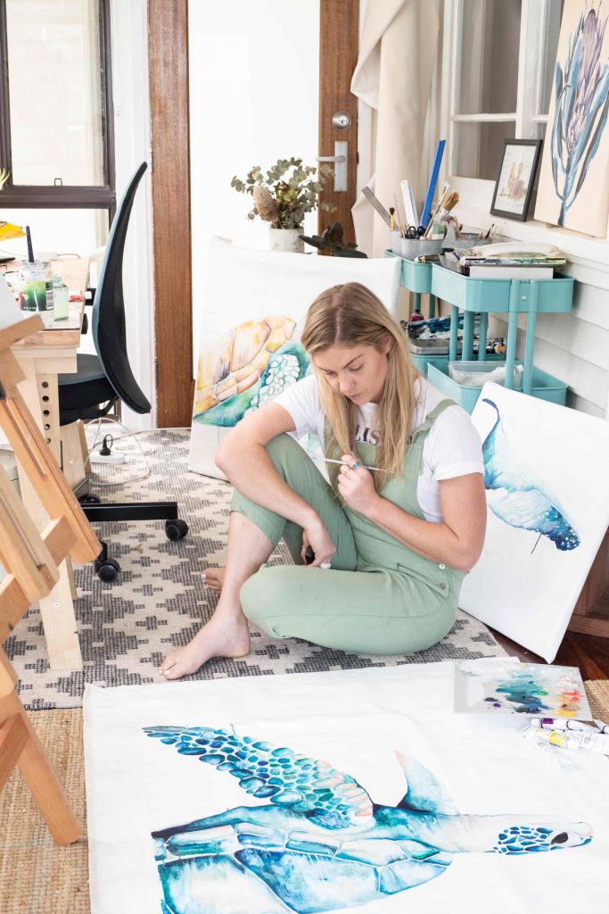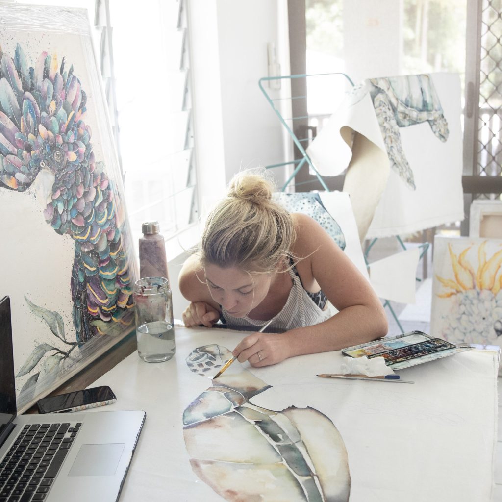 “I continued to draw and paint throughout travelling…but it wasn’t until we moved to Port Douglas that I found myself falling back in love with painting. The inspiration and nature up here was a huge influence in that. “
