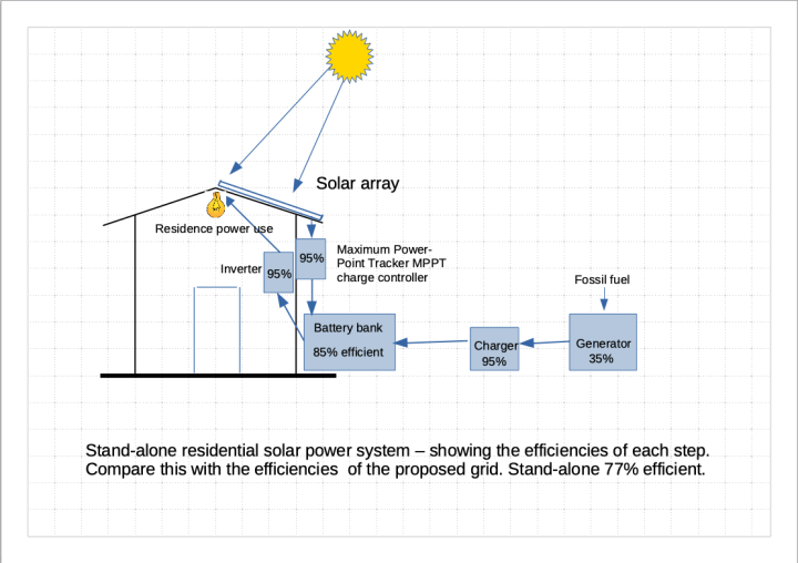 Which is why the only logical, simpler and vastly cheaper option is to upgrade residents’ and business stand alone systems to use as much solar and battery storage as possible and to encourage efficient energy use. Stand alone systems means the solar panels are largely on user’s roofs, not sterilising landscapes.