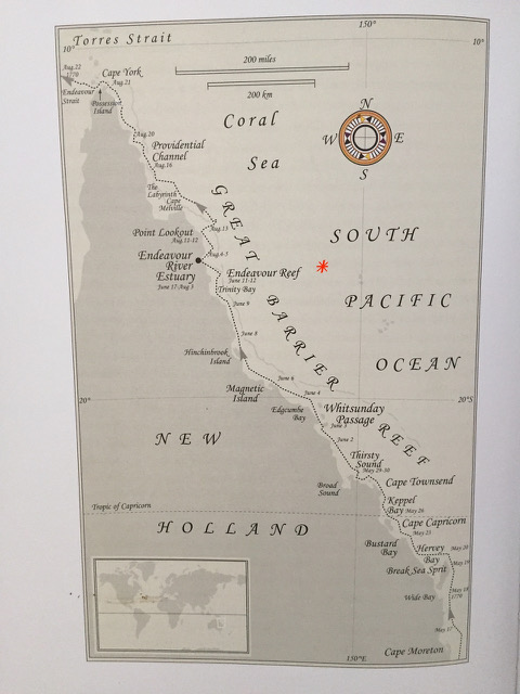 We now hove up the Best Bower, but found it impossible to save the small Bower, so cut it away at a whole Cable; got up the Fore topmast and Foreyard, warped the Ship to the South-East, and at 11 got under sail, and stood in for the land, with a light breeze at East-South-East. Some hands employ’d sewing Oakham, Wool, etc., into a Lower Steering sail to fother the Ship; others employ’d at the Pumps, which still gain’d upon the Leak.
