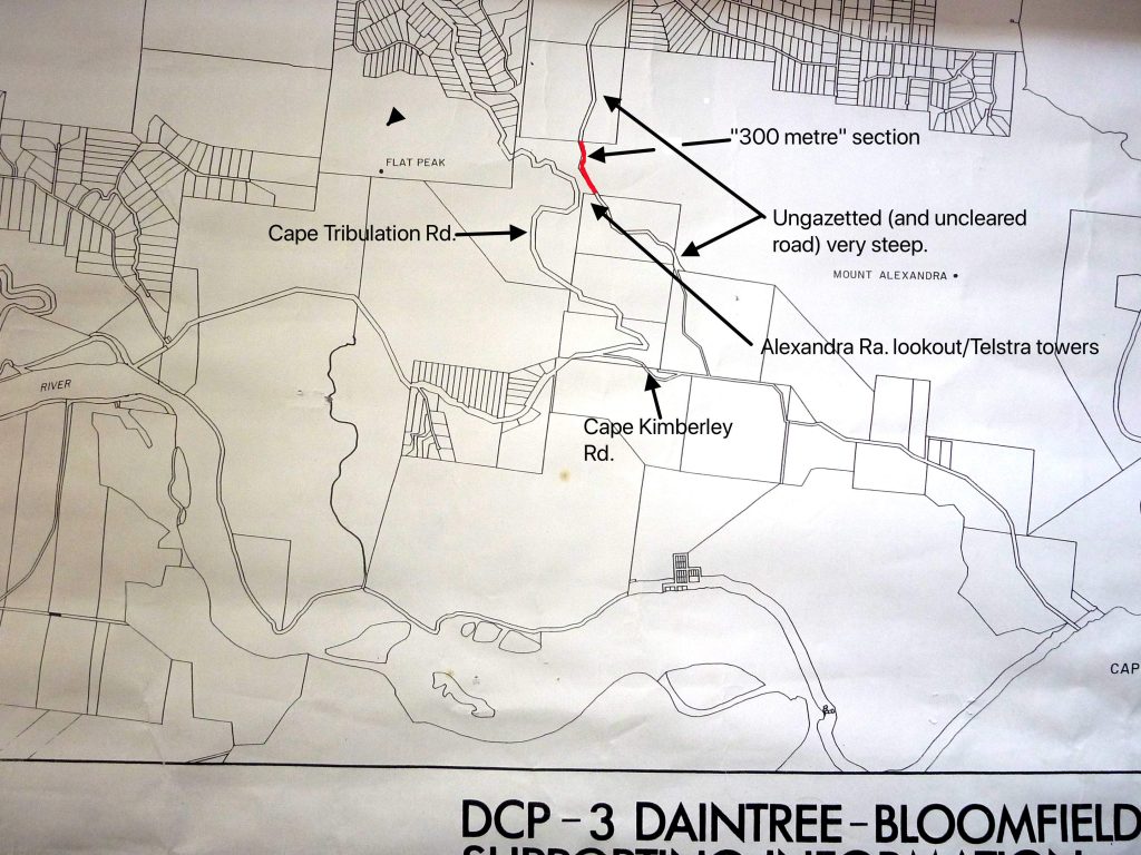 Some of the comments by the pro-development brigade are a gross misrepresentation of the truth. They are not direct drilling the cable for kilometres under the Alexandra Range. The proposed direct drilling is only for the 300 metres Wet Tropics World Heritage section in the map above. Kilometres of road reserve through the high diversity Daintree rainforest in the National Park leading up to this section will need to be cleared and have extensive earthworks for machinery to lay the cable underground along the reserve and to get the drilling machinery up the very steep slopes to the Wet Tropics World Heritage section to bore the hole under it.
