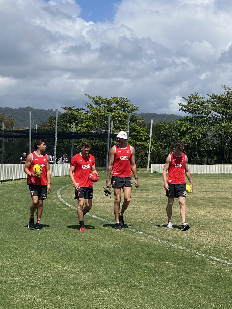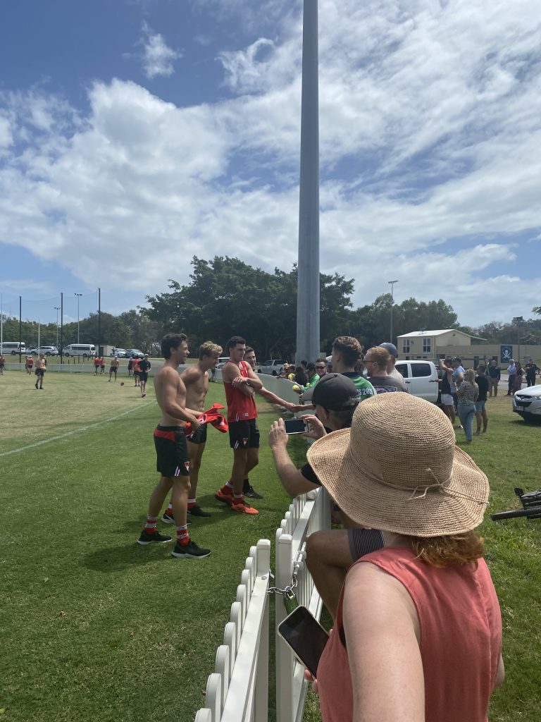 This morning, local AFL fans were treated to a Sydney Swans training session at the Port Douglas Sports Complex, with all the big team names on the field, including Lance (Buddy) Franklin, Josh Kennedy and Tom Papley.