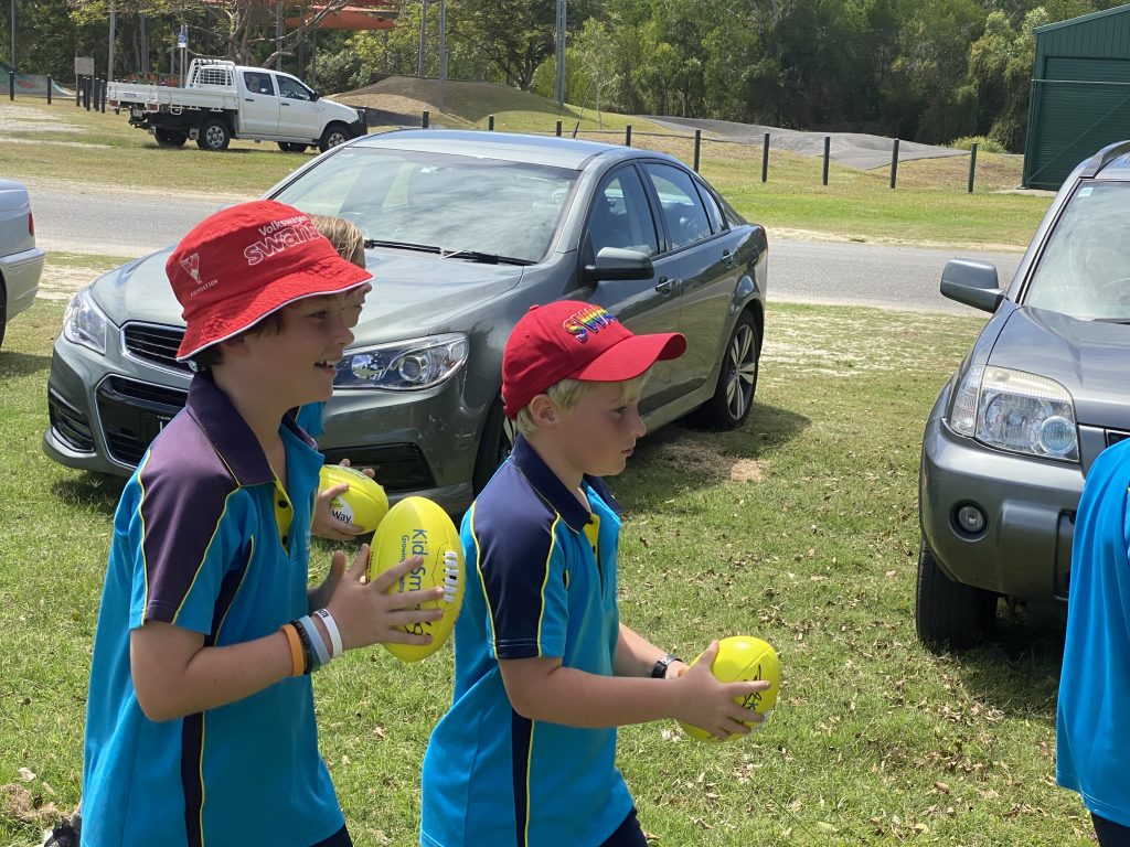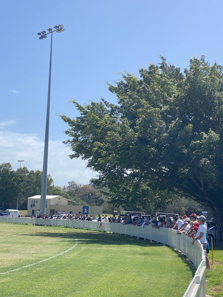 Buddy kept his distance from the crowd, staying closer to the Crocs Clubhouse, but there was plenty of low- and short-kicking action from some of the up-and-coming team members close to the public viewing area. Keen sports fans were given souvenir footballs, had a. chat with their beloved footy stars and the Port Douglas Crocs were presented with a signed Sydney Swans guernsey courtesy of coach John Longmire and the team.