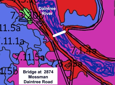 The bridge at 2874 Mossman – Daintree road requires the clearing of endangered riparian habitat on