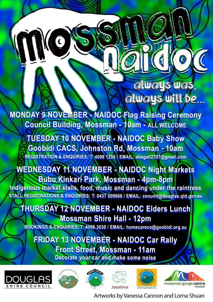 Mossman’s NAIDOC Committee is a group of local volunteers including representatives from schools, Council, community agencies, government organisations and local businesses.To accommodate the impacts of COVID-19, and the postponement since July, the new Committee have cleverly thought “outside the box” with a new calendar of events.