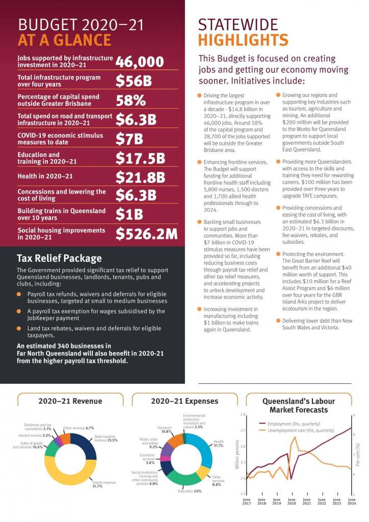 Earlier this week, Treasurer Cameron Dick handed down an historic budget designed to drive Queensland’s COVID-19 recovery, and quite simply, to create more jobs for Queenslanders. Let’s take a snapshot of the new Budget and its implications for the Far North and the Douglas Shire.