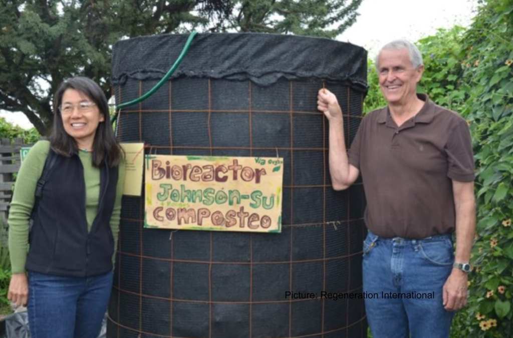 BEAM (Biologically Enhanced Agricultural Management), developed by Dr David Johnson of New Mexico State University, produces compost with a high diversity of soil microorganisms. Multiple crops grown with BEAM show it can sequester 37,700 kilos of CO2 per hectare per year.