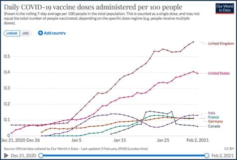 Canada’s low daily vaccination rate is interesting given that it has the largest vaccine portfolio per capita.
