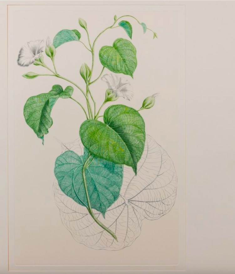 Decalobanthus peltatus is a widespread Indo-Pacific species found from Madagascar and Tanzania in Africa, across the Indian Ocean to South East Asia, down though Indonesia, Papua New Guinea and across the Pacific to Tahiti. Joseph Banks collected samples in Tahiti in 1769. Sydney Parkinson, the botanical artist on the Endeavour, painted the elegant picture depicted above.