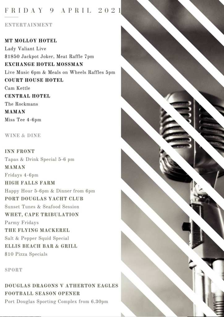 Music comes alive throughout Douglas Shire venues with Lady Valiant, Shannon Hunter, Miss Tee, Fraser Scott, Wait-a-While, Dave Cooke and Rhyece O’Neill Blues all live over the weekend.