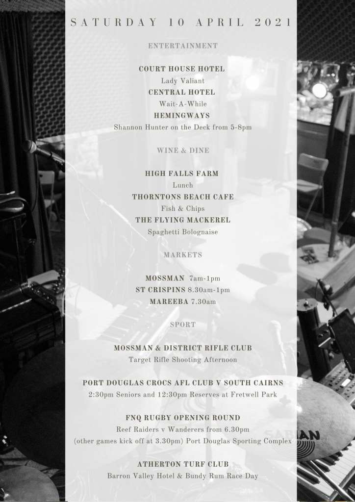 IF you are not taking advantage of the fabulous weather conditions this weekend by heading out to the reef or camping, there are plenty of choices for live music, fabulous eats, markets and opening football games throughout the Shire and beyond!