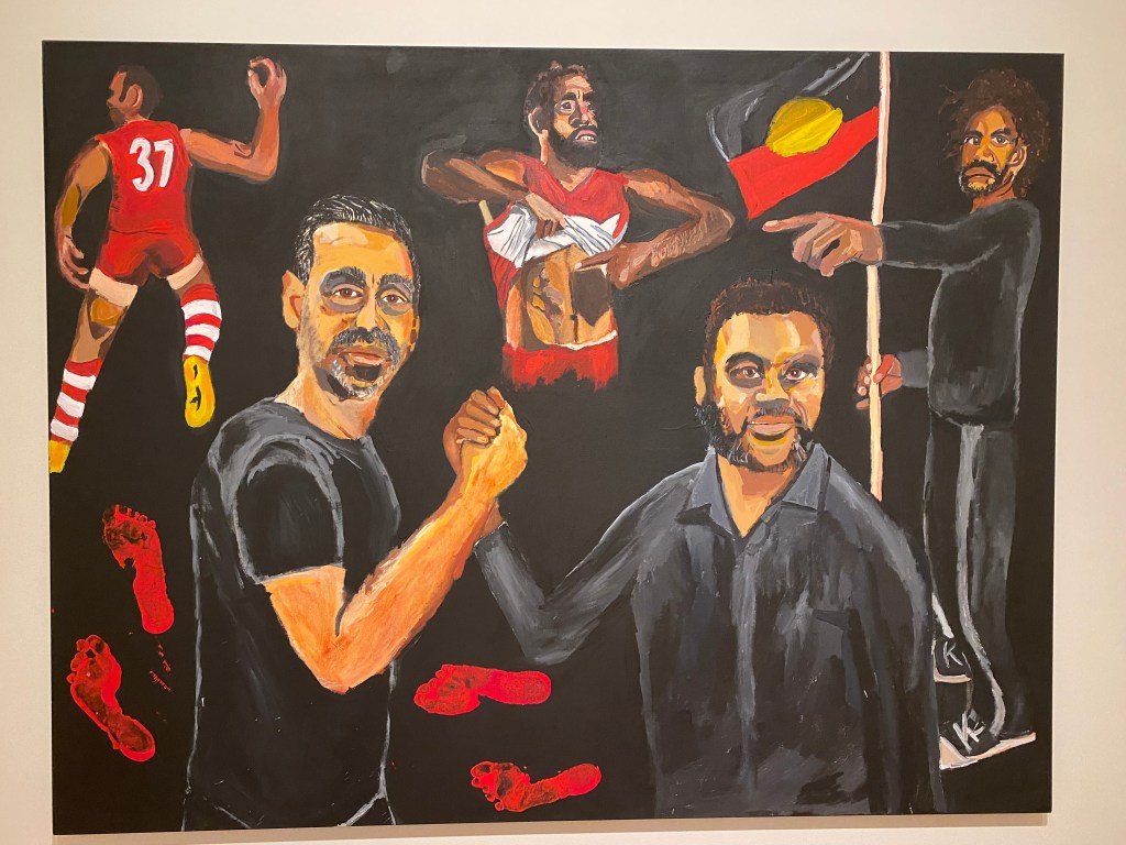 Vincent Namatjira is an Indigenous Western Arrernte artist, and has won the prize for his portrait of legendary Australian Rules footballer, Adam Goodes. This is the first time that the Prize has been awarded to an Indigenous artist.