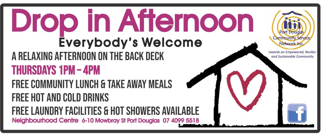 Tomorrow, the Port Douglas Neighbourhood Centre launches a weekly Community Lunch and Drop In afternoon.