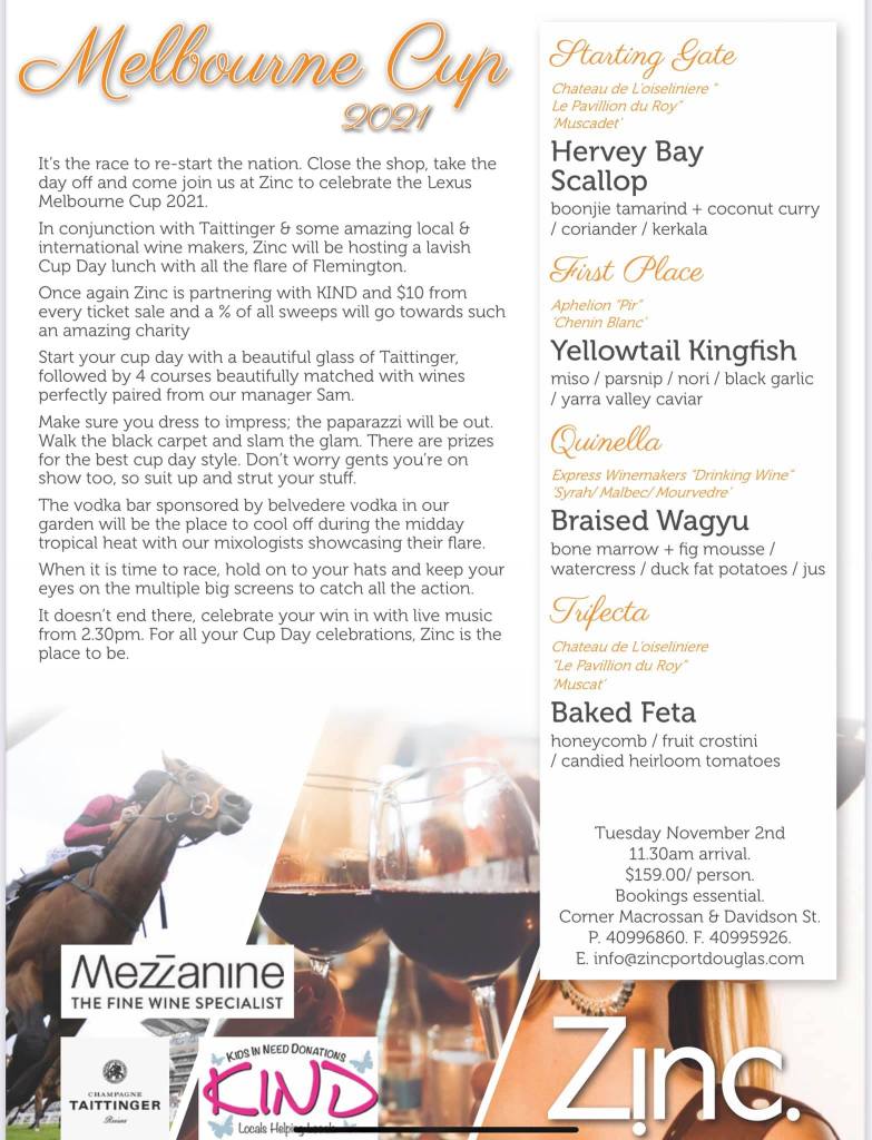 Enjoy champagne upon arrival, a five course degustation menu with matching wines and mellow tunes from the talented Sea Change. Prizes for best dressed and best fascinator.