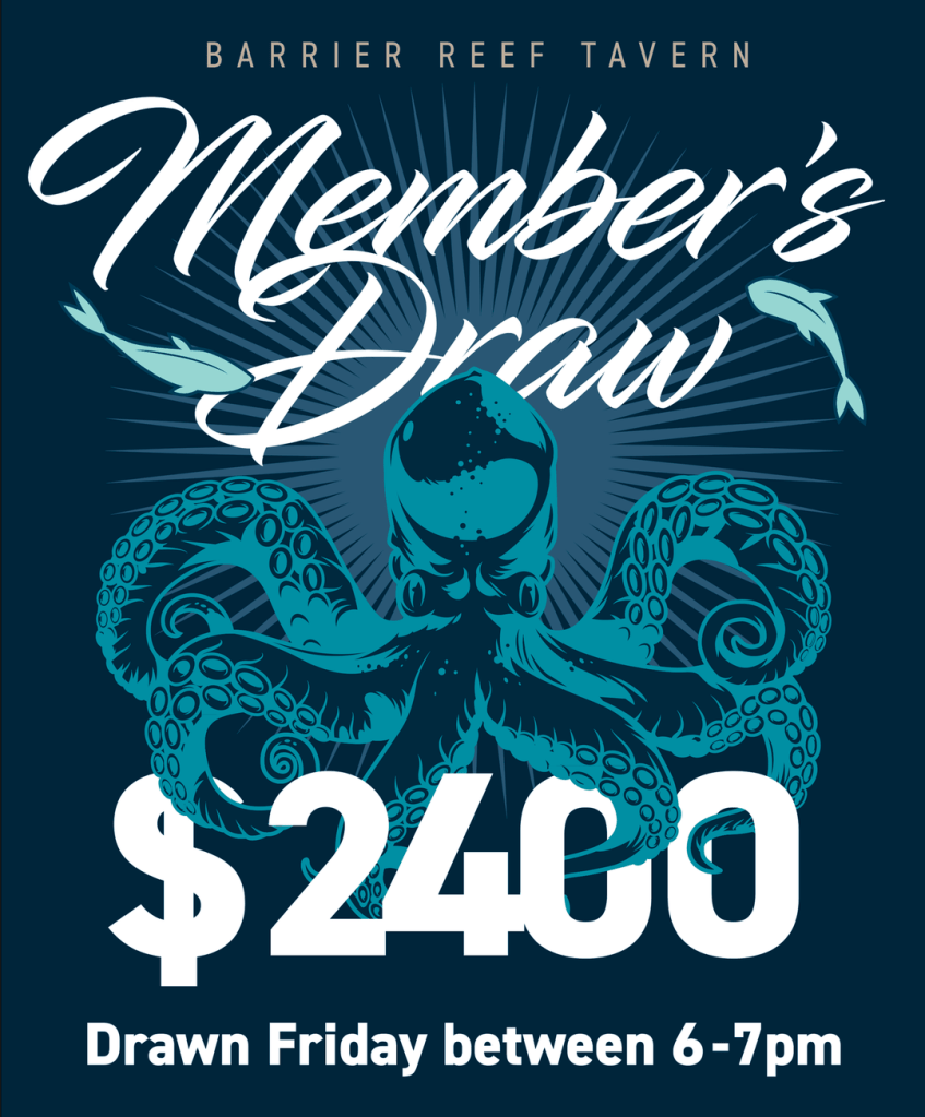 BARRIER REEF TAVERN / Members Draw ($2400) from 6.30pm