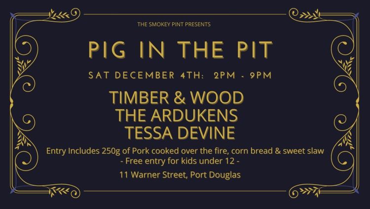 PIG IN THE PIT @ Smokey Pint 2-9pm. Snacks available all day from the smoker along with seven hours of live entertainment, Coral Sea Brewery beer and seltzer on tap.
