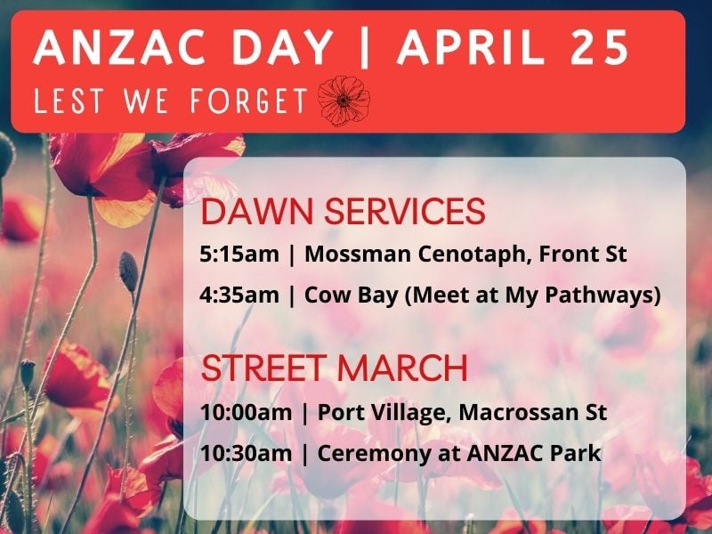 April 25 is a day of national remembrance, one of the most solemn days of the year with commemorative services held across the country. Douglas Shire will remember the fallen at traditional ANZAC Day services on Monday. Representatives from the Royal Australian Navy will attend services in Port Douglas and Mossman.