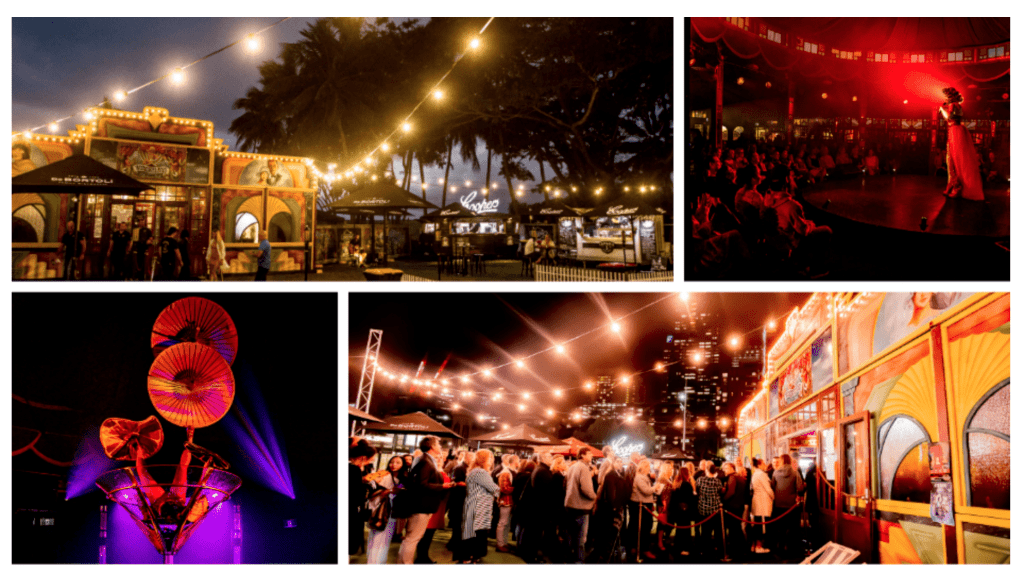The Wonderland Spiegeltent Festival Hub tours nationally from Melbourne, Sydney, Adelaide, Barwon Heads, Sunshine Coast, Port Douglas, Townsville and Cairns bringing tropical vibes, great times and world class cabaret, comedy, circus and music along with a festival atmosphere.