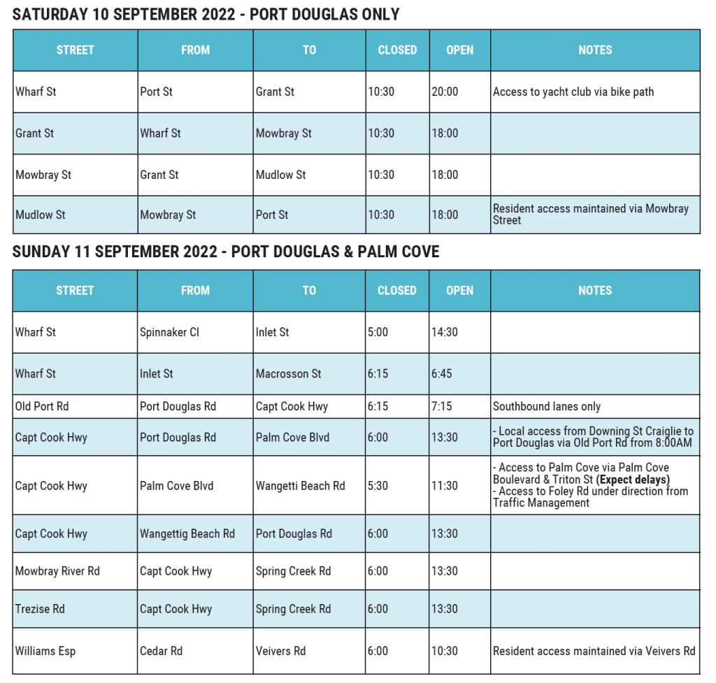 Event organisers understand that road closures impact the local community, Cairns Airport transfers, tourism operators, travelling tourists, businesses and all road users.