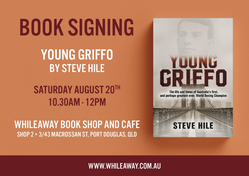 STEVE HILE AUTHOR BOOK EVENT / Whileaway Bookshop 10.30am. Join Steve Hile as he shares his writing and inspiration around his new book, Young Griffo, set amongst ganglife in the dank streets of Sydney in the late nineteenth century. The top of these gangs was the Greens push and they were led by a tough bare-knuckle fighter by the name of Larry Foley. One of their pastimes was running illegal underground prize-fights. Larry trained many of the best boxers in Australia and some of the best in the world. In the 1880s Larry was introduced to a well-known street fighting kid called – Young Griffo. The kid, under Larry’s training, became a true boxer and won the Australian boxing title, then one year later became the first Australian to win the World Title…