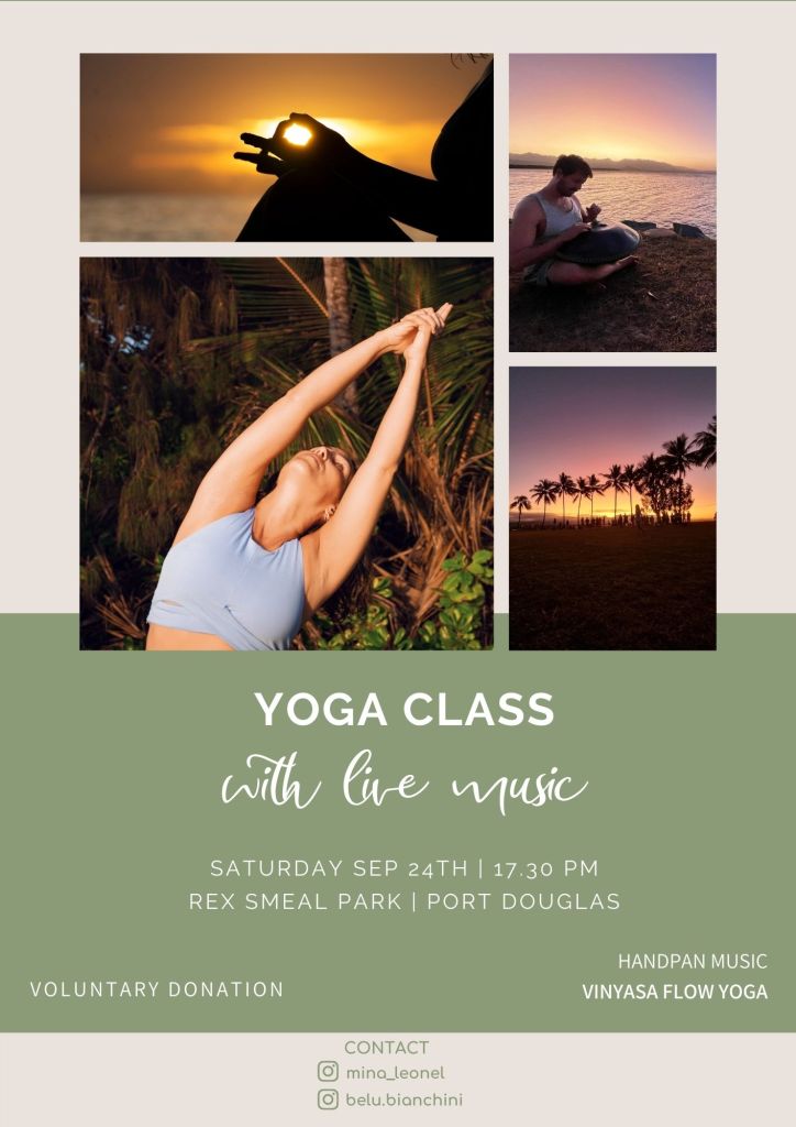YOGA WITH LIVE MUSIC / Rex Smeal Park 5.30 pm. Come to share a beautiful afternoon practicing yoga with the company of the handpan music.You don’t need experience. Join us and enjoy the sunset at the amazing landscape that our town provides. Just bring a yoga mat or a towel! Voluntary donation.