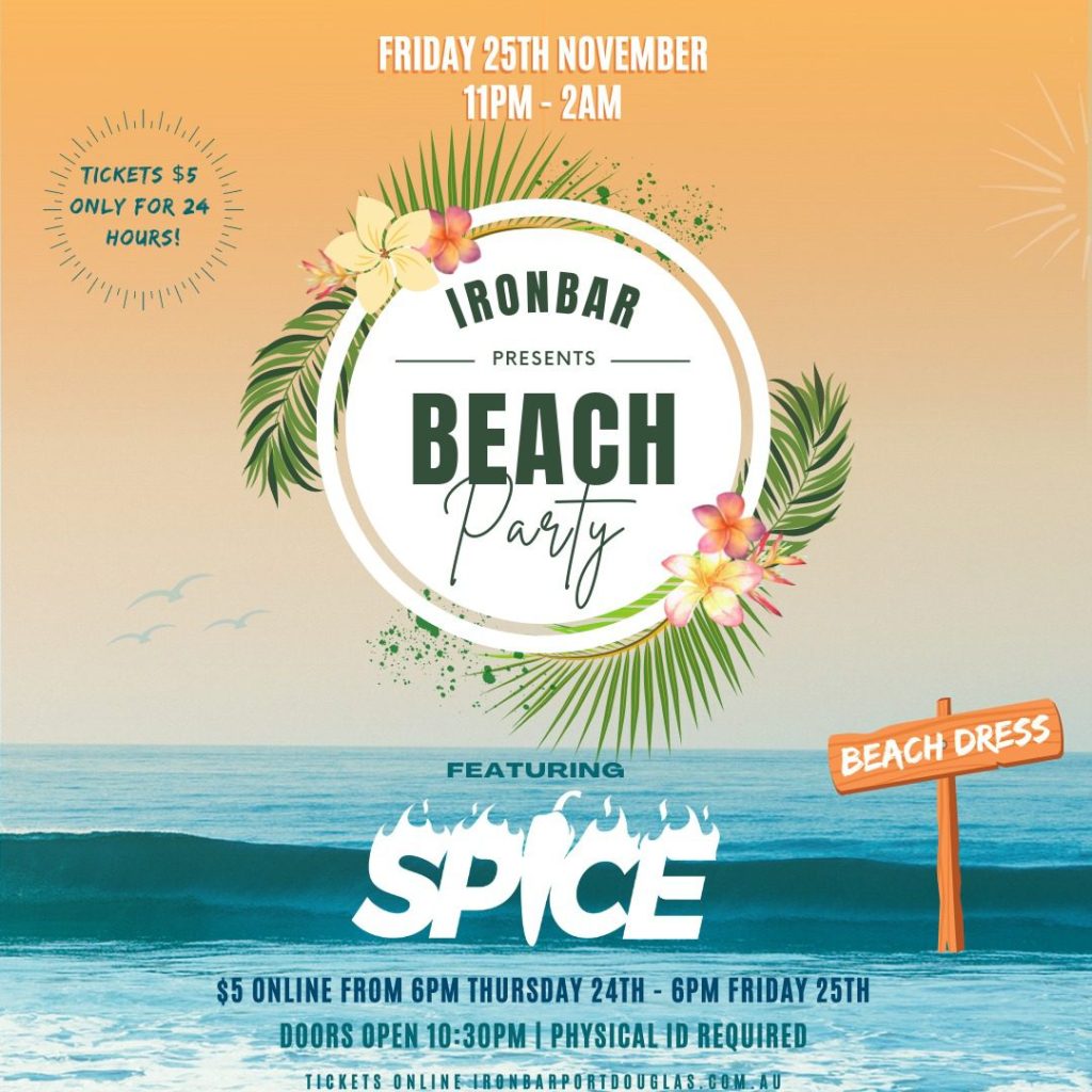 IRONBAR / Beach Party with DJ Spice. Till 6pm Friday 25 November, snaffle a half price ticket ($5) via the website. Tickets are available for $10 at the door on the day.