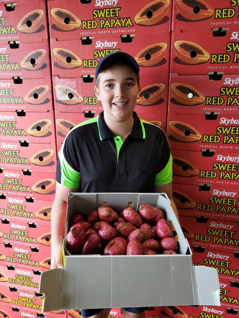 Up on the Tablelands, Farmer Dave is having a red spud crisis, with a coupla tonne to move locally as the wholesale markets don’t have a demand for red potatoes at the moment.