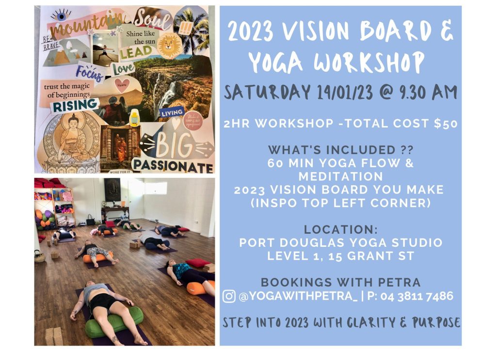 Port Douglas Yoga Studio is excited to offer a unique Vision Board & Yoga Workshop with Petra this Sunday. A fantastic way to travel into the New Year with clarity to what you want to achieve and bring into your life. The first and most powerful step is to visualise it!!