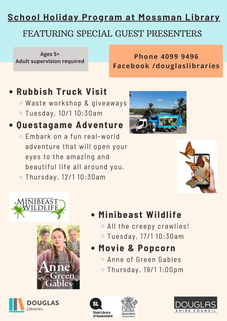 Mossman Library 10:30am for ages 5+, adult supervision required. No bookings required.