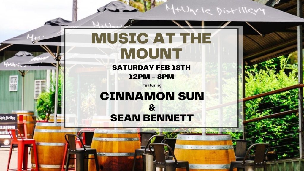 Cinnamon Sun and Sean Bennett live from 1-8pm with food truck, cocktails and beer. free event at Mt Uncle Distillery.