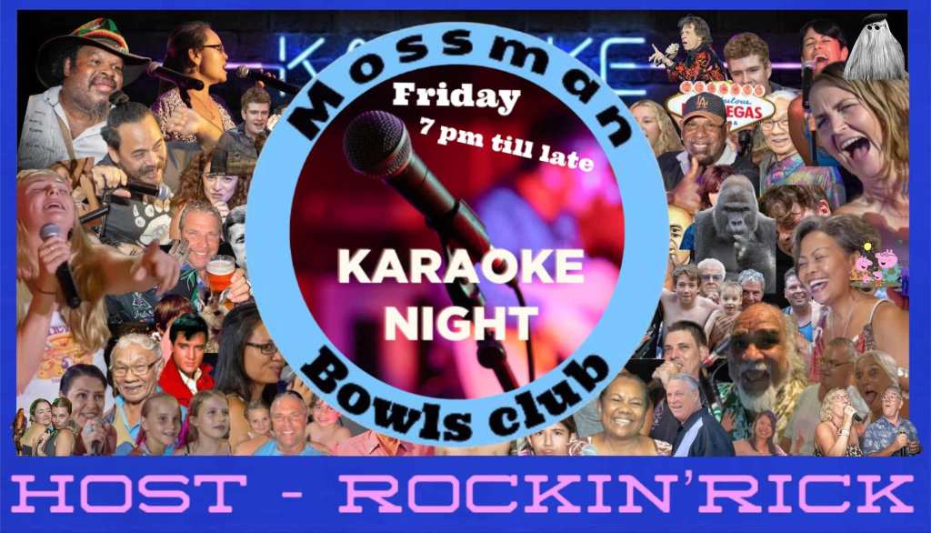 - Karaoke with Rockin’ Rick at the Mossman Bowls Club.