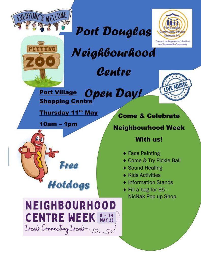 Port Douglas Neighbourhood Centre Open Day will showcase a range of activities and information stands Thursday 11 May from 10am to 1pm at Port Village Shopping Centre.