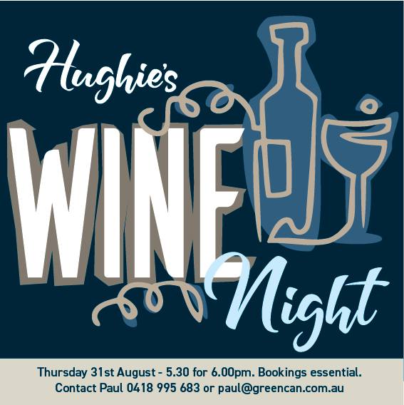 Hughies’ popular wine night is on again next Thursday, featuring hand-picked wines by Sorby Adams, a multi award-winning family-owned winery from the Barossa.
