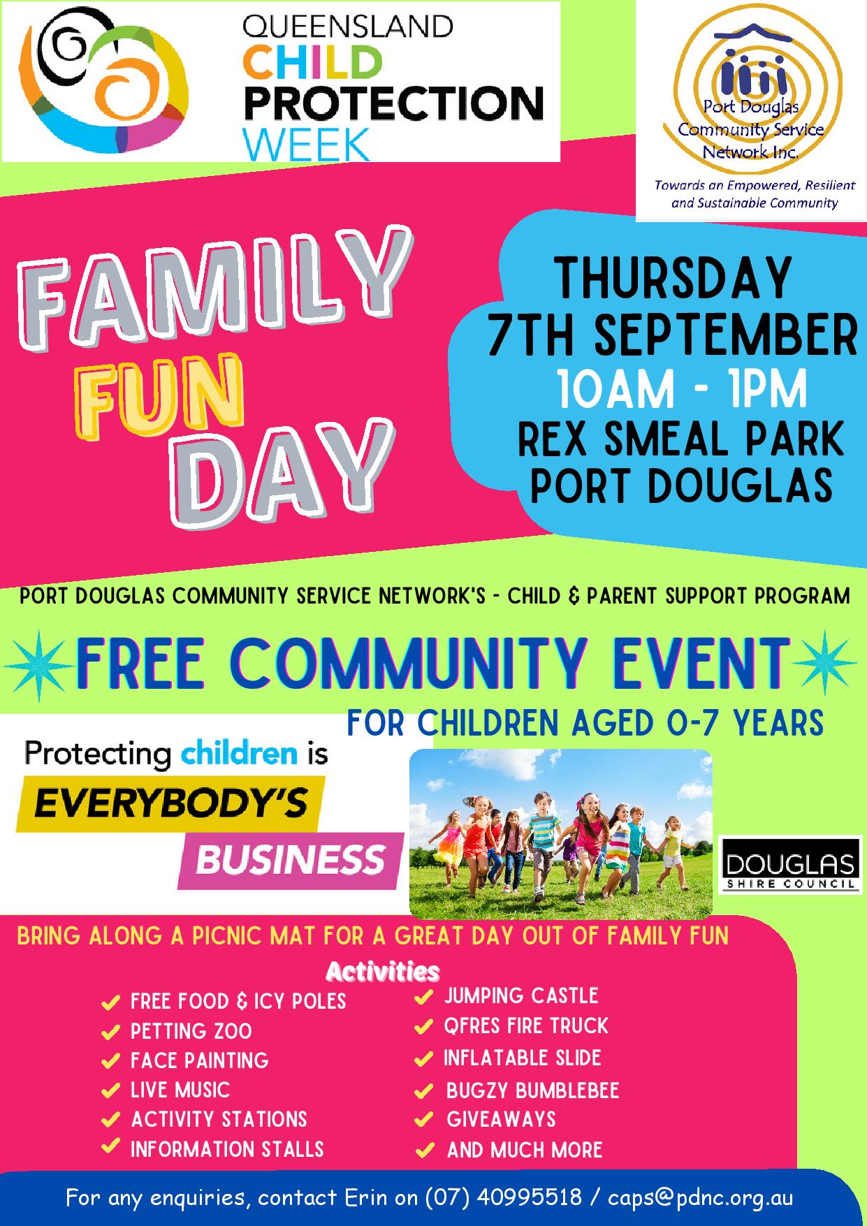 Mossman Youth Centre are also hosting a Family Evening, dedicated to child protection awareness, in the Mossman Shire Hall from 2.30-8pm, with free activities, movies, games and a BBQ.