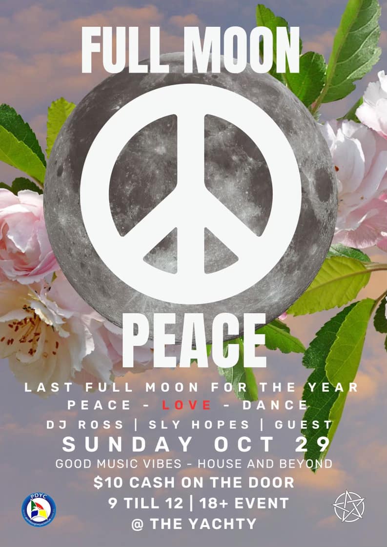 The Yachty will close off the weekend with a bang, with a Full Moon Peace party featuring two DJs and guests-last one for the year!